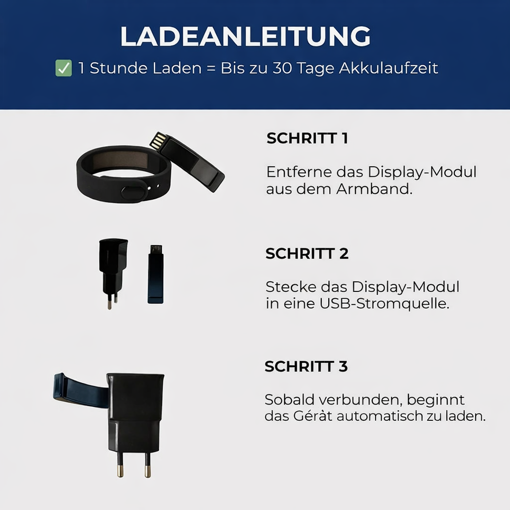 - ✓ Einfach zu bedienen – anziehen, Uhrzeit einstellen, fertig