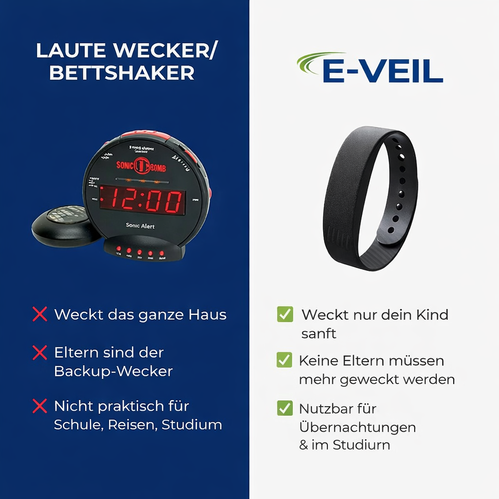 Vibro weckt sie mit leiser Vibration direkt am Handgelenk. Kein lauter Alarm, den ihr Gehirn ausschalten könnte. Kein Bettschüttler, den sie im Schlaf abstoßen könnten. Nur ein ruhiges Aufwachen, das sie nicht ignorieren können.