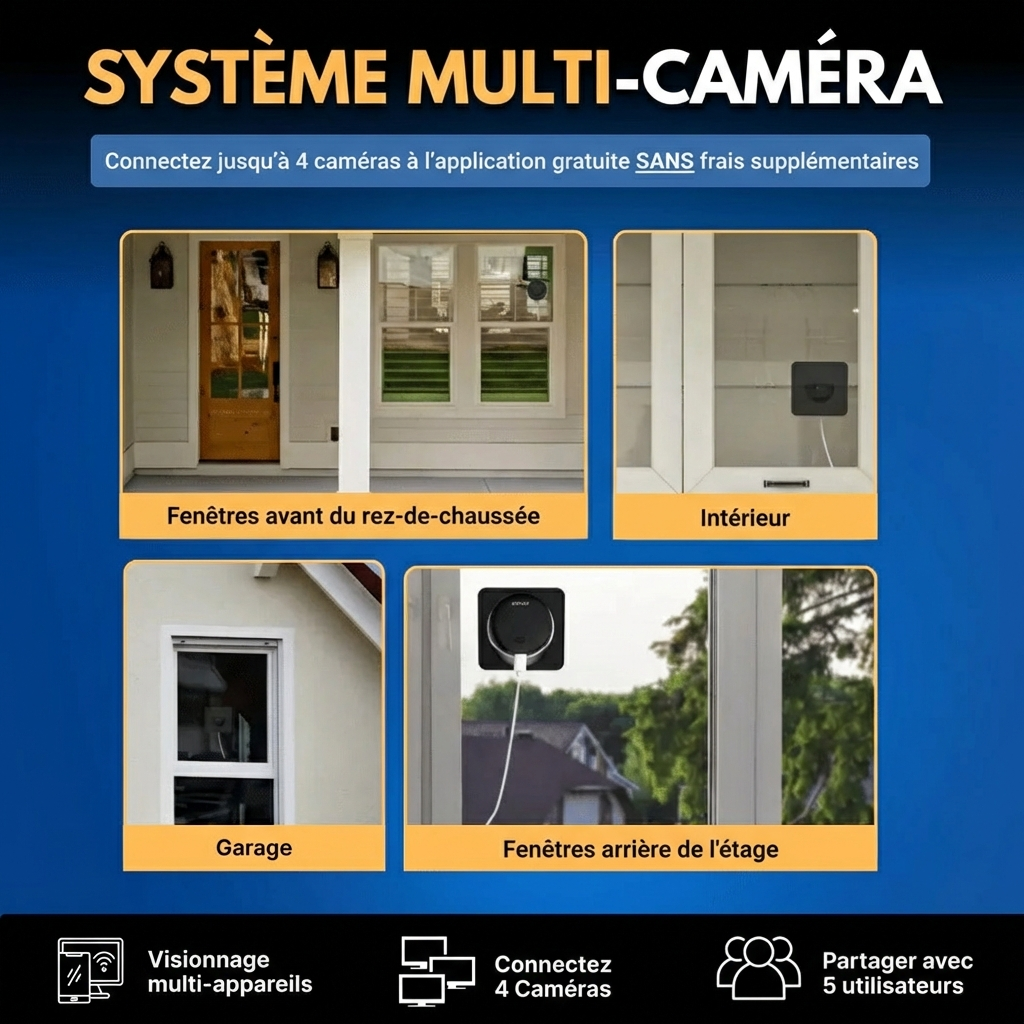 Couverture multiple — connectez jusqu'à 4 caméras, visualisez-les toutes dans une seule application gratuite