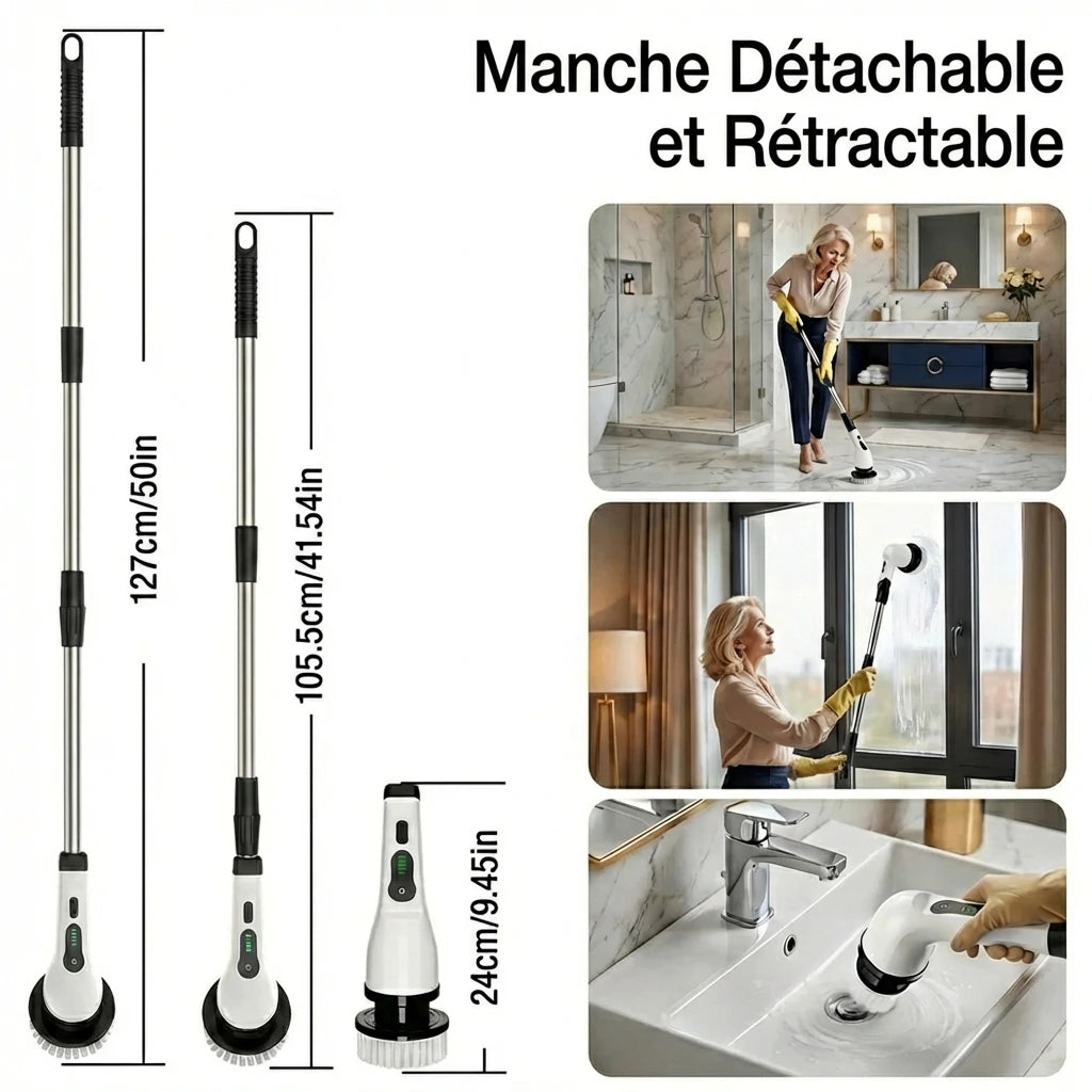 Une puissance de plus de 300 tr/min et une action de rotation à 360° éliminent rapidement les saletés tenaces, sans vous abîmer le dos et les genoux.